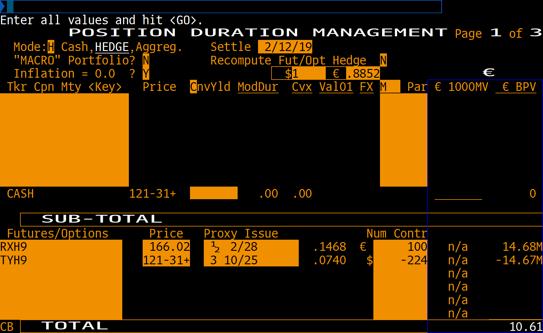 Here is the bund treasury note future hedging ratio screen: