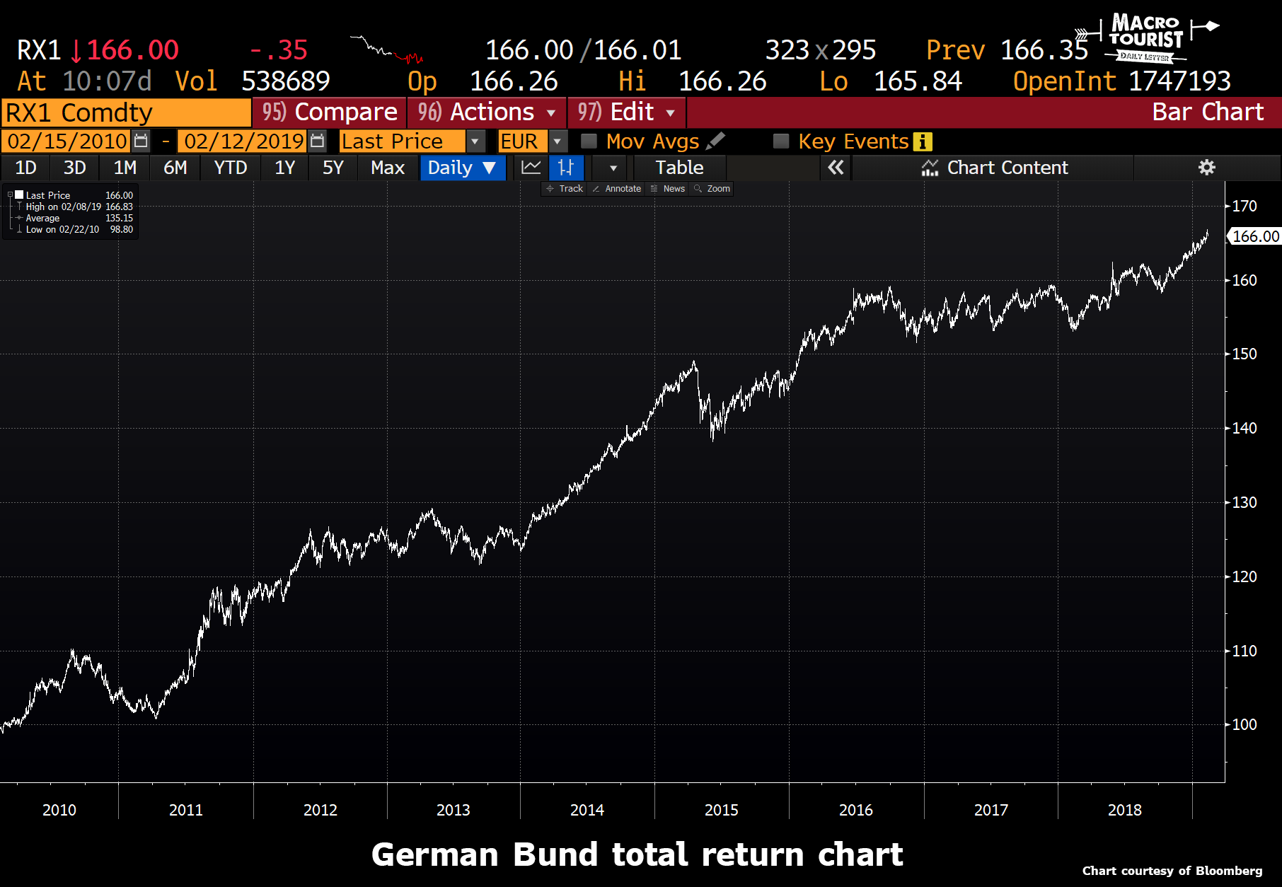 I am not telling you anything new. Here is the chart of the total return of the German bund future over the past nine years: