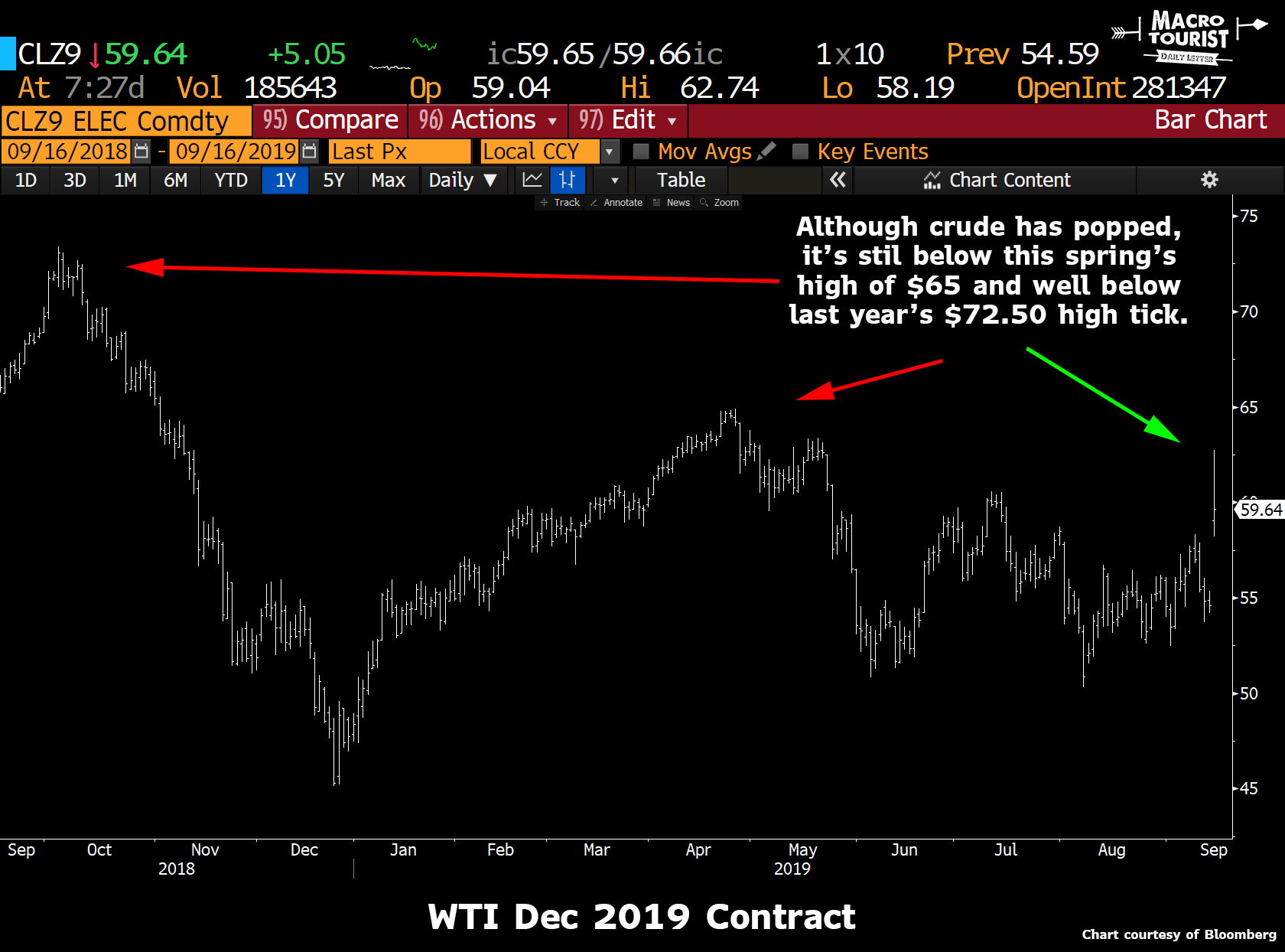 Let’s face it, crude oil is up 8% this morning, but it still hasn’t even busted through this spring’s $65 high - forget about last year’s $72.50 high tick.