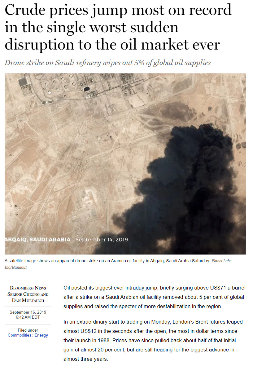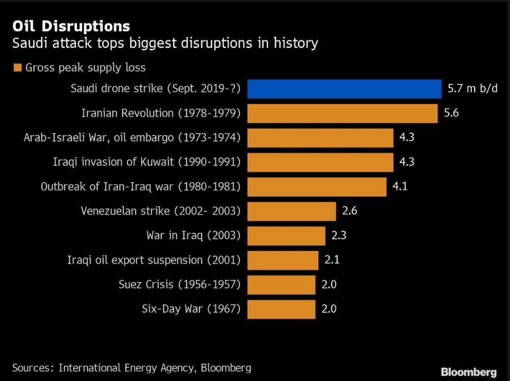 I had planned to write about a boring economic topic, but with this weekend’s attack on Saudi Arabian energy assets, I interrupt regularly scheduled programming to address the topic on everyone’s lips.