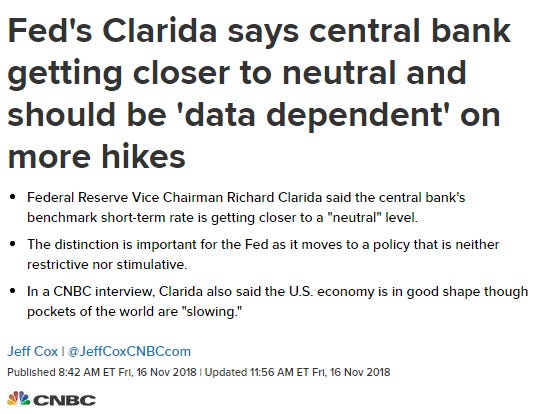 Over the past week there have been a handful of different FOMC board members who have signaled this “auto-pilot” strategy is no longer in play. Clarida’s comments were probably the clearest: