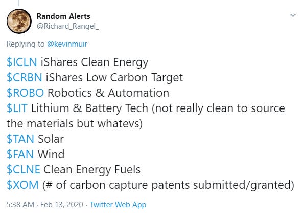 I love this idea. Those were two popular ETFs that were often mentioned, but I have included the holdings to foster ideas about individual names: