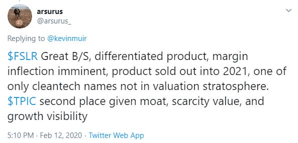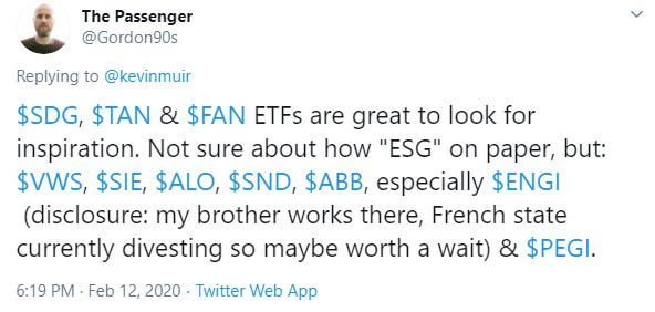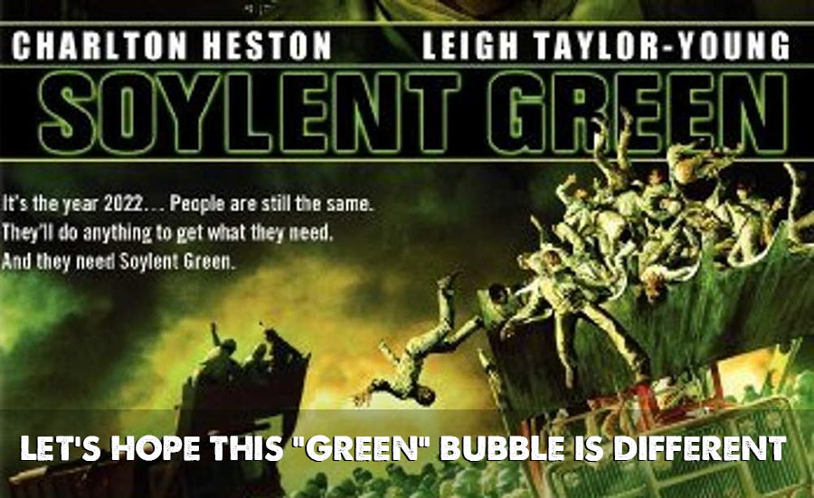 When I wrote the original article, "THE COMING GREEN BUBBLE", I mistakenly conflated ESG compliant companies with "green" technology companies. Just to make sure there is no confusion - I am bullish on "green" companies. I realize these companies will most likely also score high on the ESG scale, but it's really the "green" part that attracts me.
