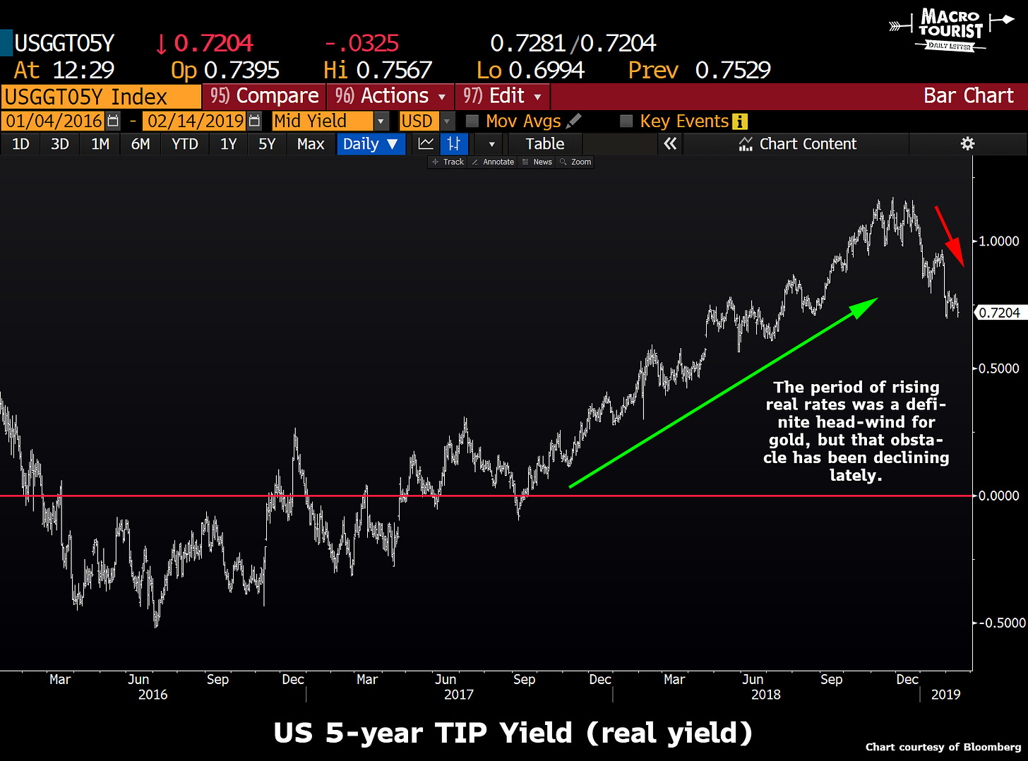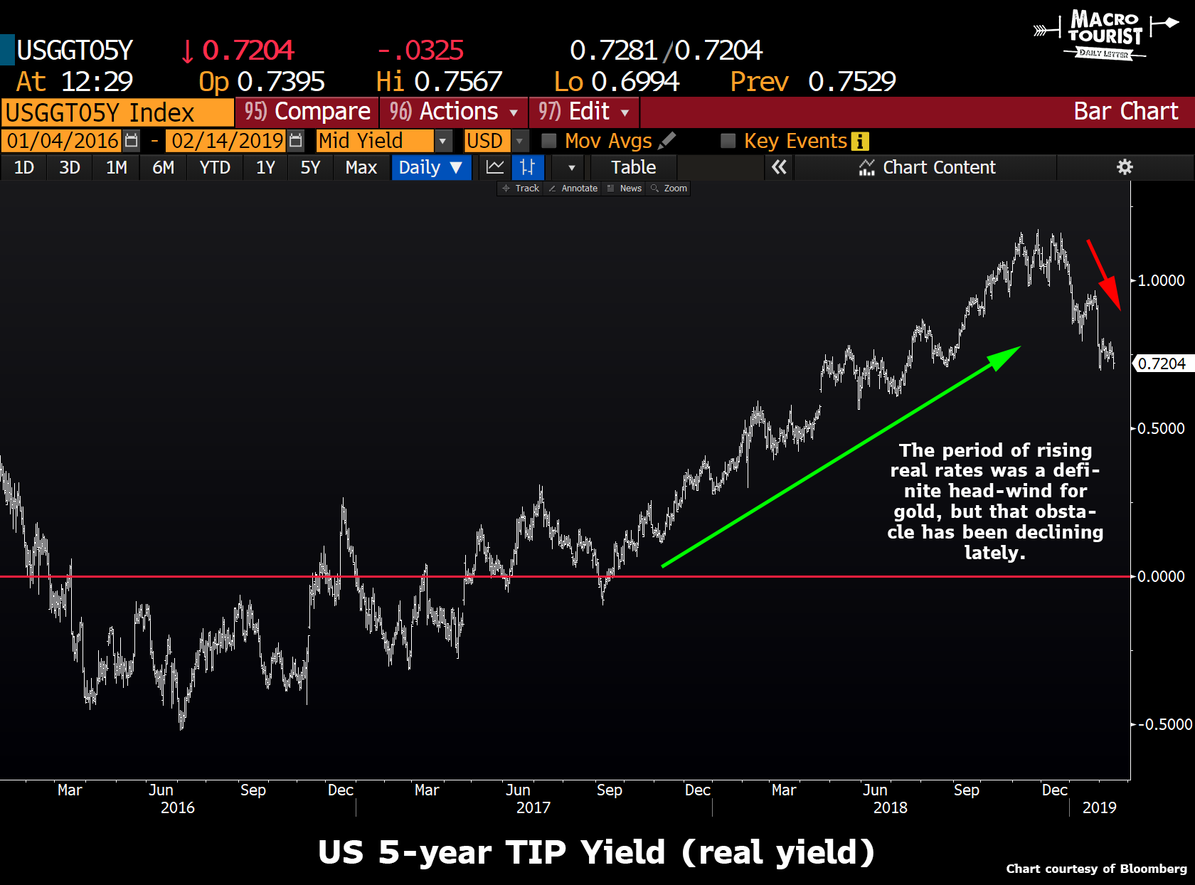 You might argue that gold is simply rallying along with the decline in real yields. Powell’s historic flip-flop has certainly caused real rates to decline and help gold.