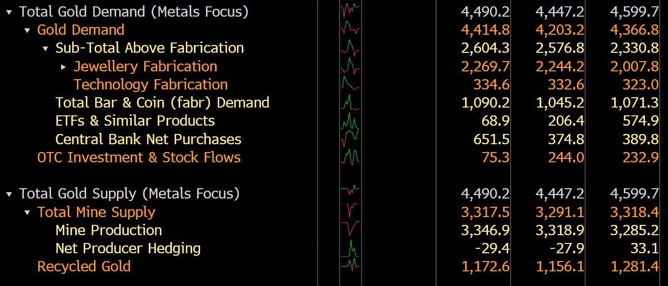 And it’s not like this is a small part of the gold supply-demand picture. There are approximately 3,300 tonnes of gold mined each year.