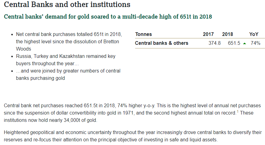 I urge you to read the recent report by the World Gold Council titled “Gold Demand Trends Full year and Q4 2018. From the executive summary:
