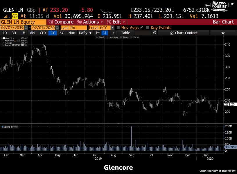 Other commodities I am picking away at? Crude oil. Nat gas (I know this one has less to do with the flu). I am also thinking about just buying Glencore or some other commodity firm that is better able to navigate the coming commodity bull market.