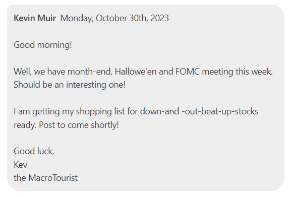 The MacroTourist Private Feed via EmailM'tourist Private Feed Recapfor Monday, October 30th, 2023Kevin MuirOct 31, 1983∙ Paid1ShareThis post is for paid subscribersSubscribeAlready a paid subscriber? Sign inPreviousNext