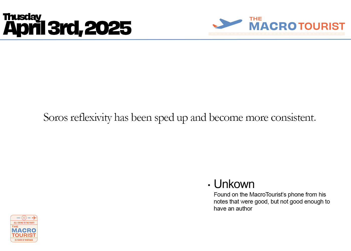 The MacroTourist Private Feed via EmailM'tourist Private Feed Recapfor Thursday, April 3rd, 2025Kevin MuirApr 04, 1985∙ Paid11ShareThis post is for paid subscribersSubscribeAlready a paid subscriber? Sign inPreviousNext