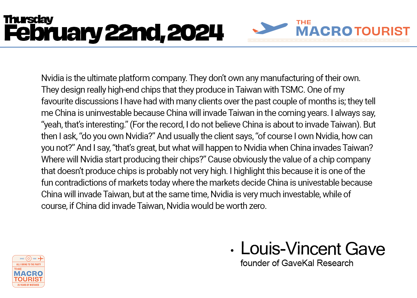 The MacroTourist Private Feed via EmailM'tourist Private Feed Recapfor Thursday, February 22nd, 2024Kevin MuirFeb 23, 1984∙ Paid4ShareThis post is for paid subscribersSubscribeAlready a paid subscriber? Sign inPreviousNext