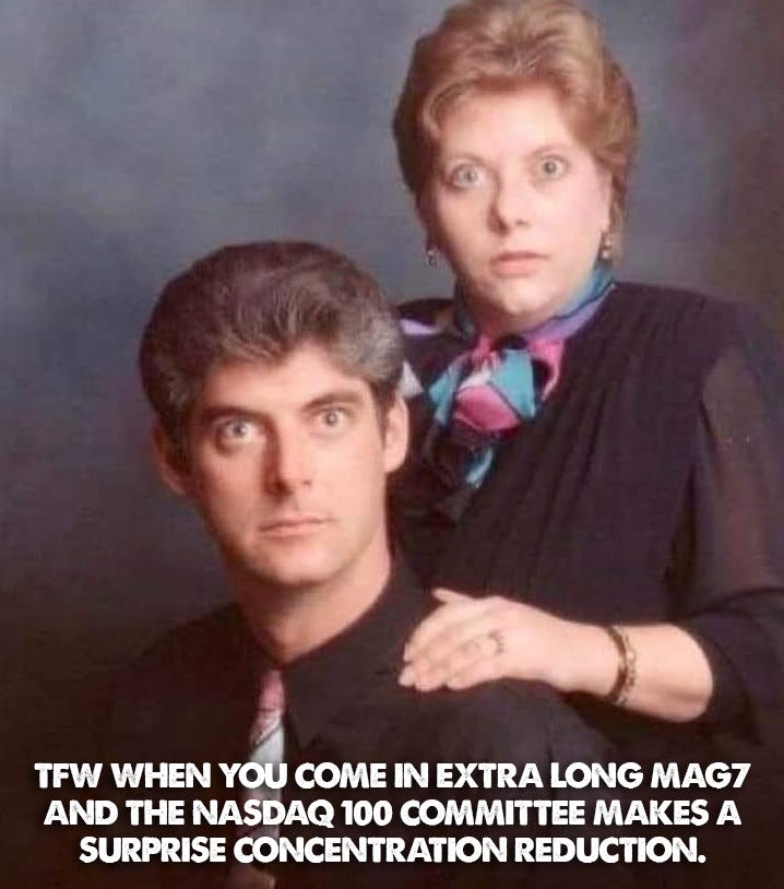 NASDAQ REBALANCE WONKINESS The 'tourist explains today's strange market movementsKevin MuirDec 12, 2023∙ Paid1631ShareA lot of folks were confused by today’s Nasdaq market action. There were claims that “things were broken” or that “the market wasn’t acting like it should.”Why were they so fussed?Well, this chart sums up it.This post is for paid subscribersSubscribeAlready a paid subscriber? Sign inPreviousNext