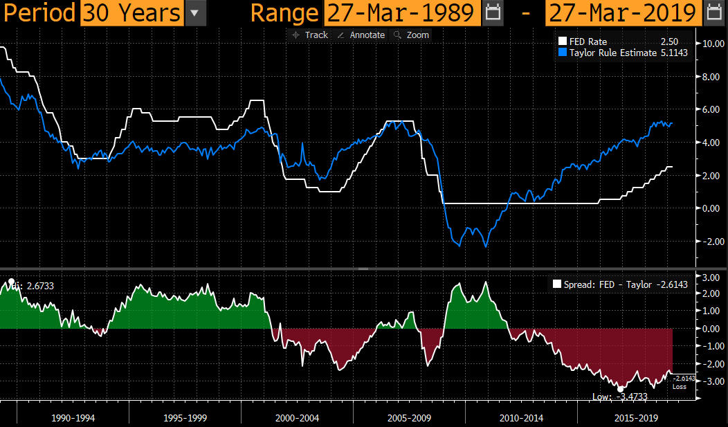 Yet look at the current level of monetary accommodation. Fed funds are still 250 basis points too low according to this model!