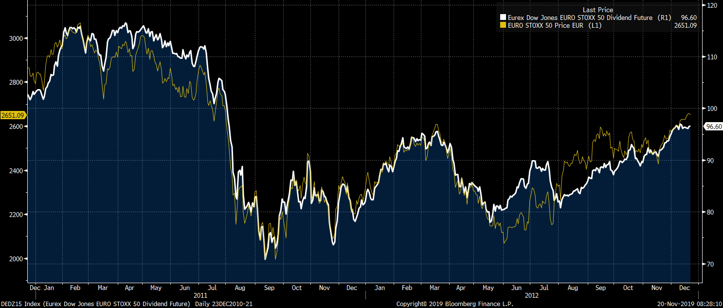 We’ve been trading the SX5E dividends for many years, it is truly the gift that keeps on giving. Only caveat is make sure to always trade the long-end (to avoid surprises on the short maturities) and keep rolling.