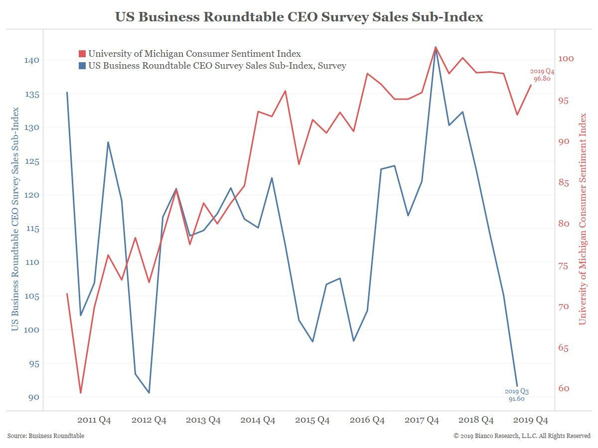 Michigan consumer confidence was also out this morning and it upticked again to 96.8. I think this is a reflection of the new highs in stocks. But CEO confidence is going the other way. Again, no consistency among the survey data.