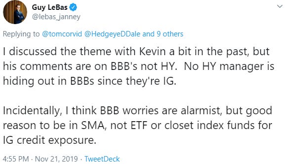 I like to hear when others disagree with me - it keeps me honest - and no one seems to enjoy that task more than Janney's Chief Fixed Income Strategist - Guy LeBas.