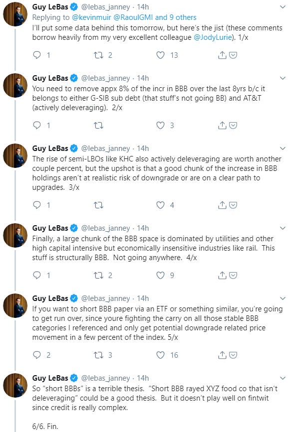 However, for those who want to see a good discussion devolve into a twitter battle between some pretty big fintwit heavyweights, take a gander at the whole feed. It often branches out and there was definitely some heated conversations. If you are interested, start at this link. Good luck! I never knew BBB's could such an emotional topic.