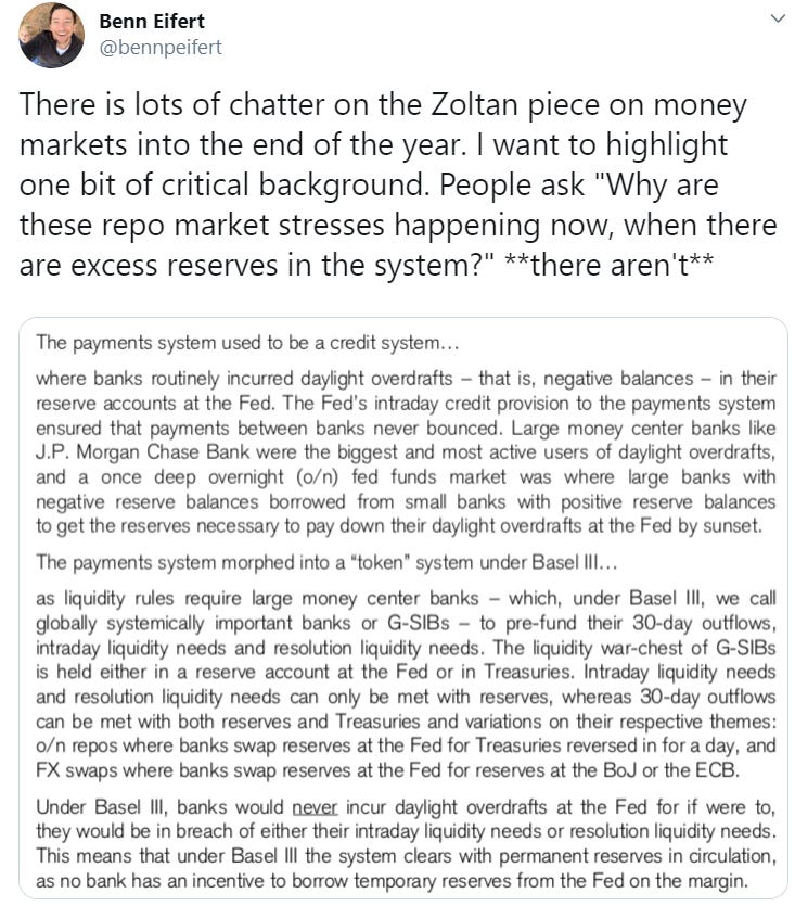 His recent analysis regarding Zoltan's controversial piece about potential year-end repo liquidity issues is indicative of Benn's great content.