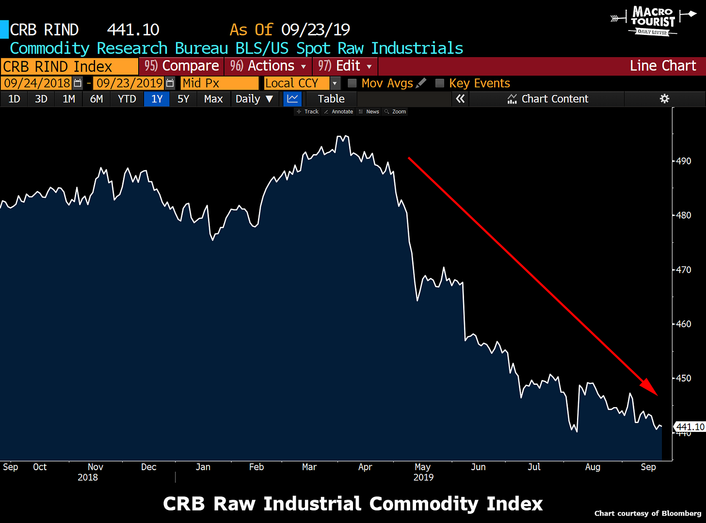 But what has me most worried is the CRB Raw Industrial Commodity Index.