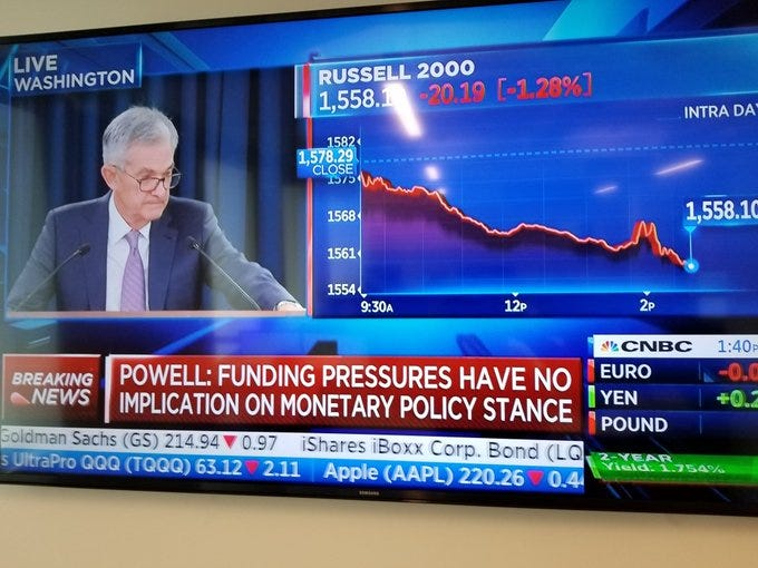 Last week all sorts of shenanigans occurred in the repo funding markets. I will not bother giving you my opinion about the reasons for the stress. Yeah, I know the argument that it’s not a big deal as the Federal Reserve was able to provide the liquidity the market was needing.